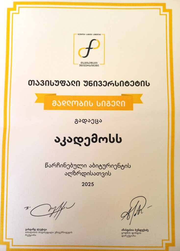 “თავისუფალი უნივერსიტეტის” ტრადიციად ქცეული მადლობის სიგელი სკოლა “აკადემოსს”.